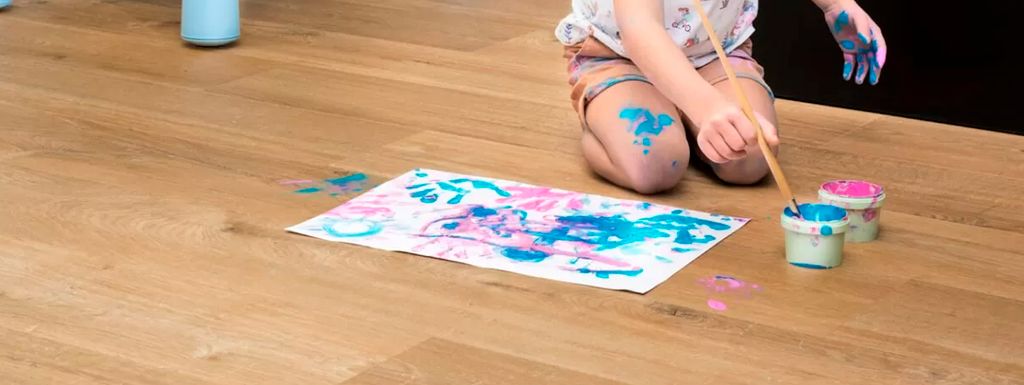 - ПВХ-плитка с защитным верхним слоем от воды, царапин и пятен,