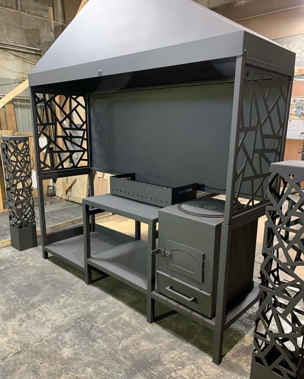 Изготовим и произведем монтаж полностью оборудованных, готовых к эксплуатации мангальных зон открытого и закрытого типа по индивидуальным размерам в соответствии со всеми пожеланиями и вашими дизайнерскими предпочтениями. Возьмемся за изготовление леерных ограждений любой сложности, а также сможем предложить вам различные эстетичные варианты лестничных маршей, навесов и других сооружений для придомовой территории вашего загородного дома или дачи.