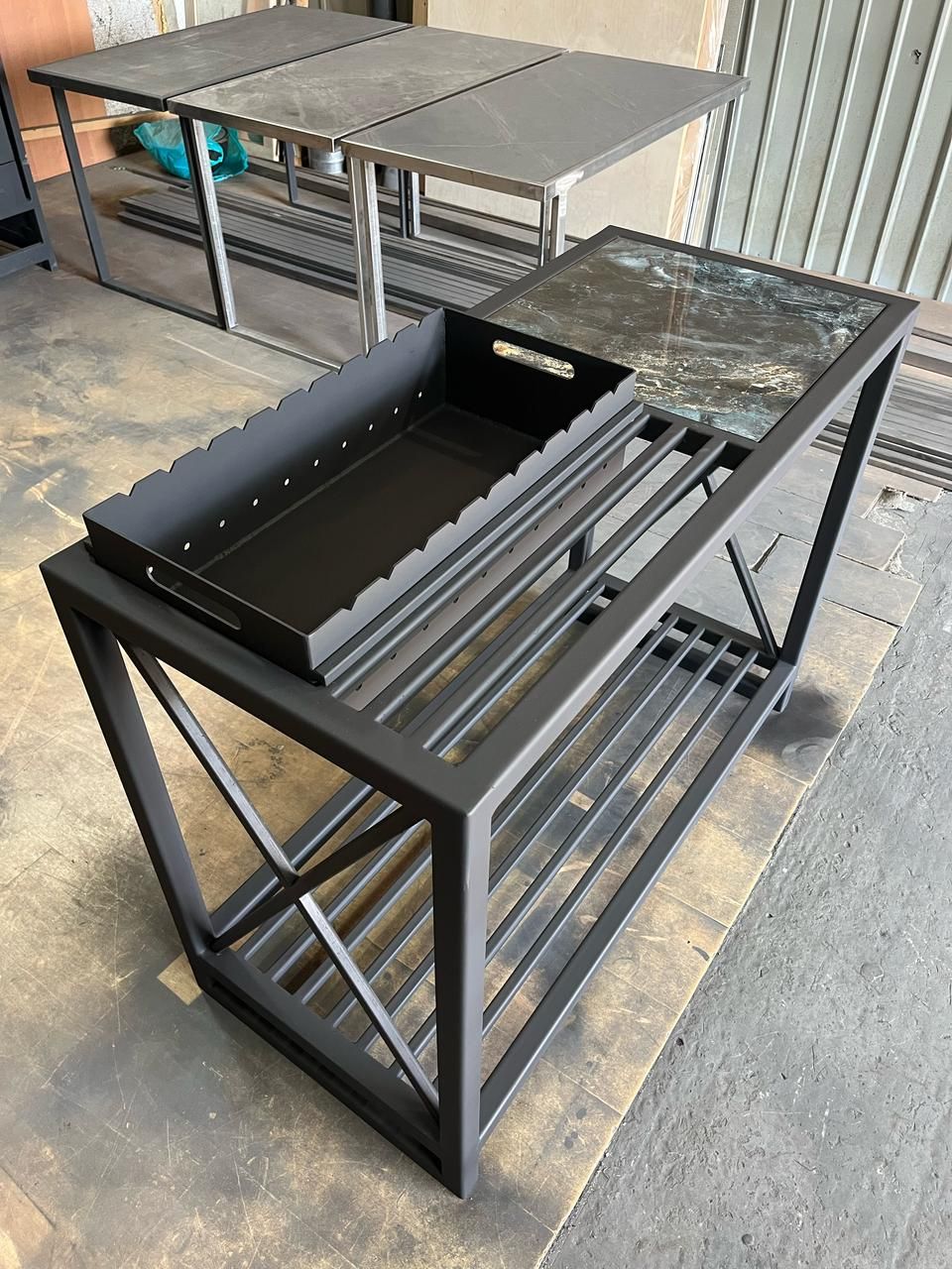 - столы на железном основании;