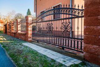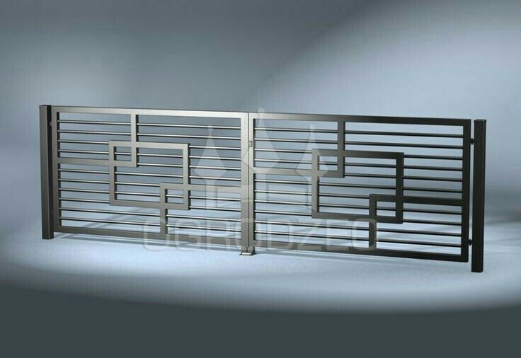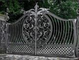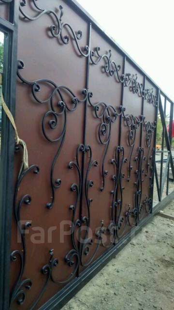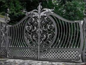 - ворота распашные откатные в стиле лофт, с элементами художественной ковки;