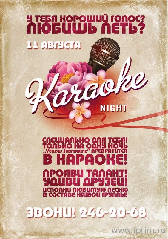 Только на одну ночь ночной клуб Yellow Submarine превратится в КАРАОКЕ!!!