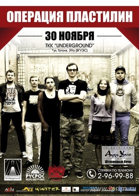Впервые на Дальнем Востоке - ОПЕРАЦИЯ ПЛАСТИЛИН — одна из самых ярких и востребованных российских «около панк» групп, прошедшая долгий эмпирический путь от панк-хардкора до нынешнего «young lovers rock’а» и сочетающая в себе небывалую мелодичность и обилие интереснейшего инструментала.