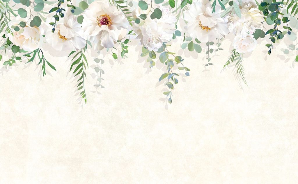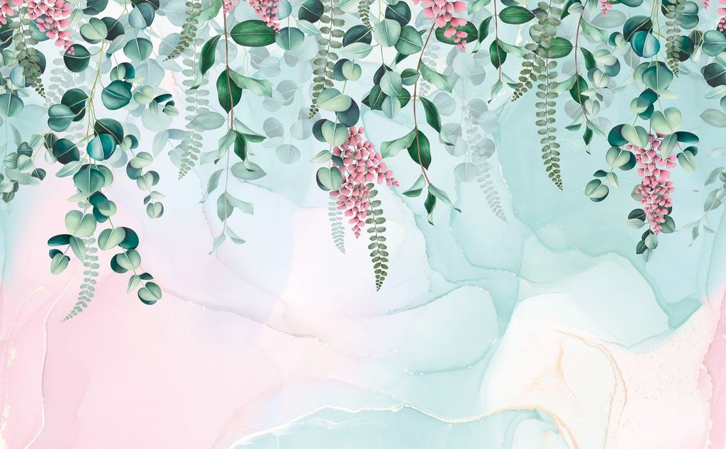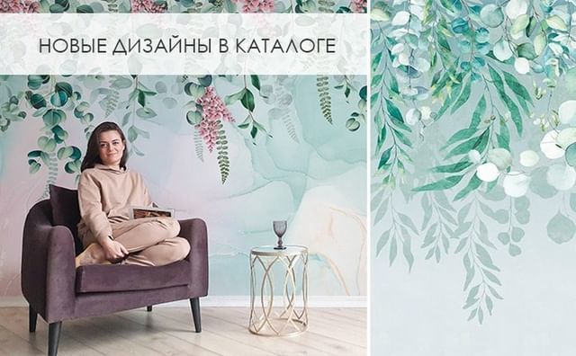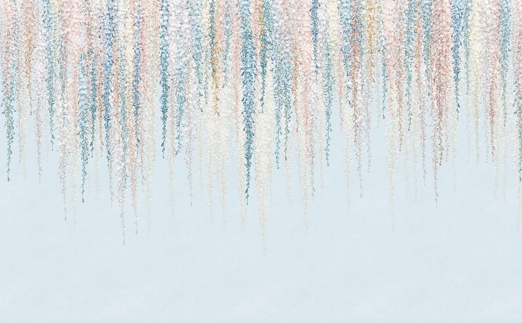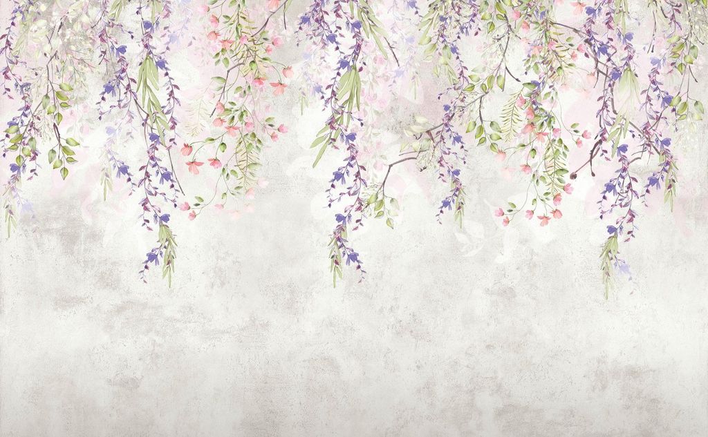 Дизайнеры создали серию сюжетов, основной темой которых стали? свисающие цветы, идеально подходящие для оформления стен позади диванов. Поводом для создания таких дизайнов стали участившиеся обращения клиентов с просьбами подобрать фрески или бесшовные обои для оформления именно этой зоны.