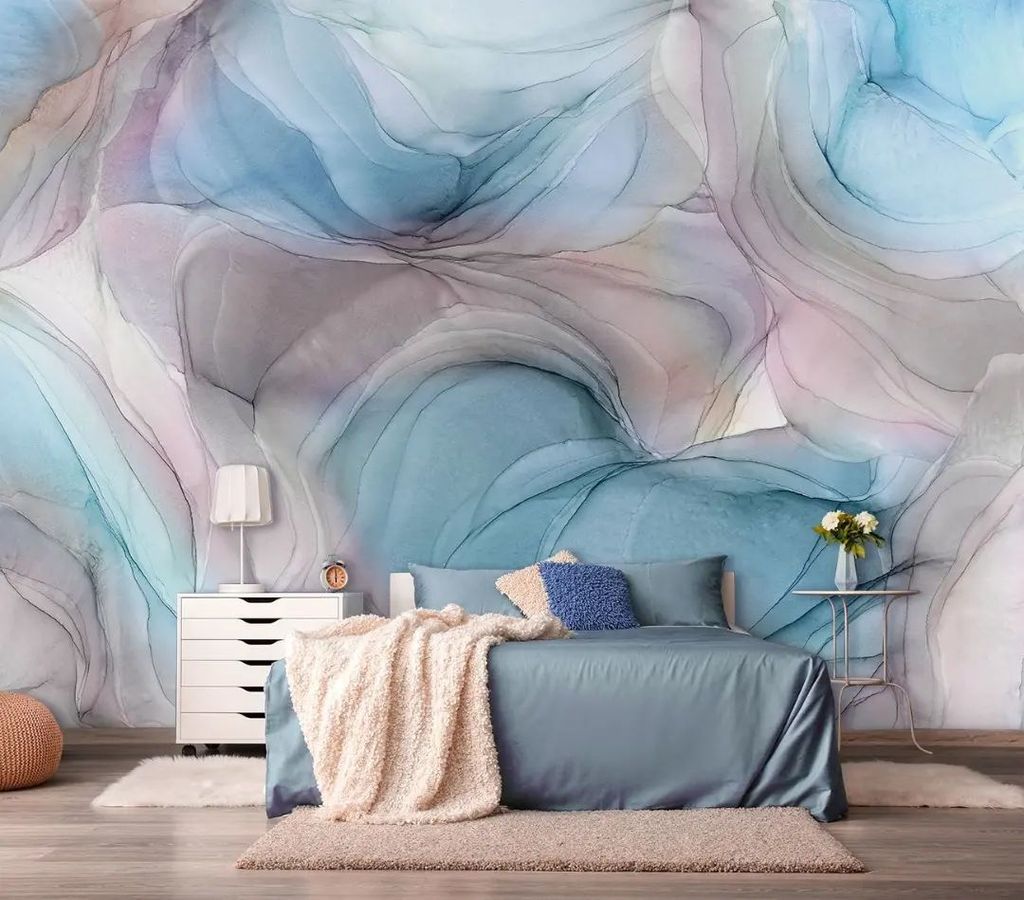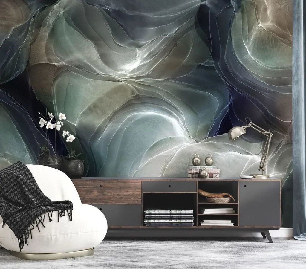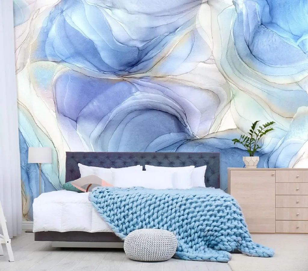 Флюиды в качестве принтов для оформления стен появились не так давно - около пяти лет назад. При этом они сразу произвели приятное впечатление на дизайнеров. Объемный рисунок и интересный водный эффект, полученный путем хаотичного смешения красок - стали основой для создания интересных динамичных интерьеров.