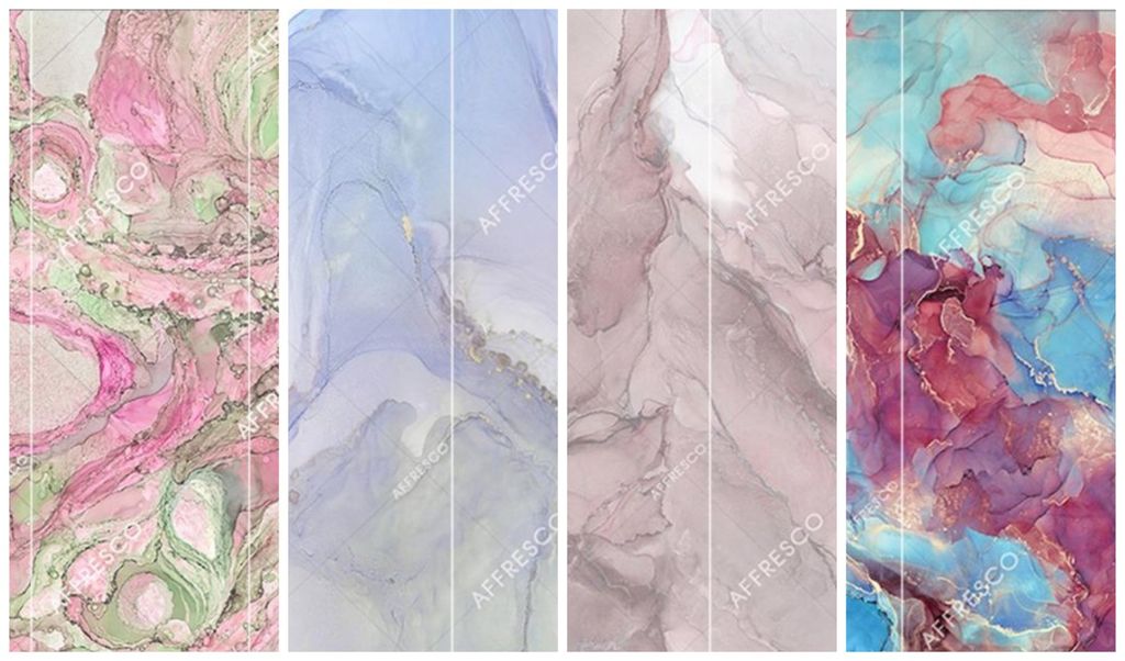 Полотна отличаются разнообразием фактур, усиливающих эффект подлинного настенного рисунка. Фрески могут быть искусственно состарены, покрыты специальными трещинами, имитировать старую стену здания, бетон или популярный в средние века гобелен.