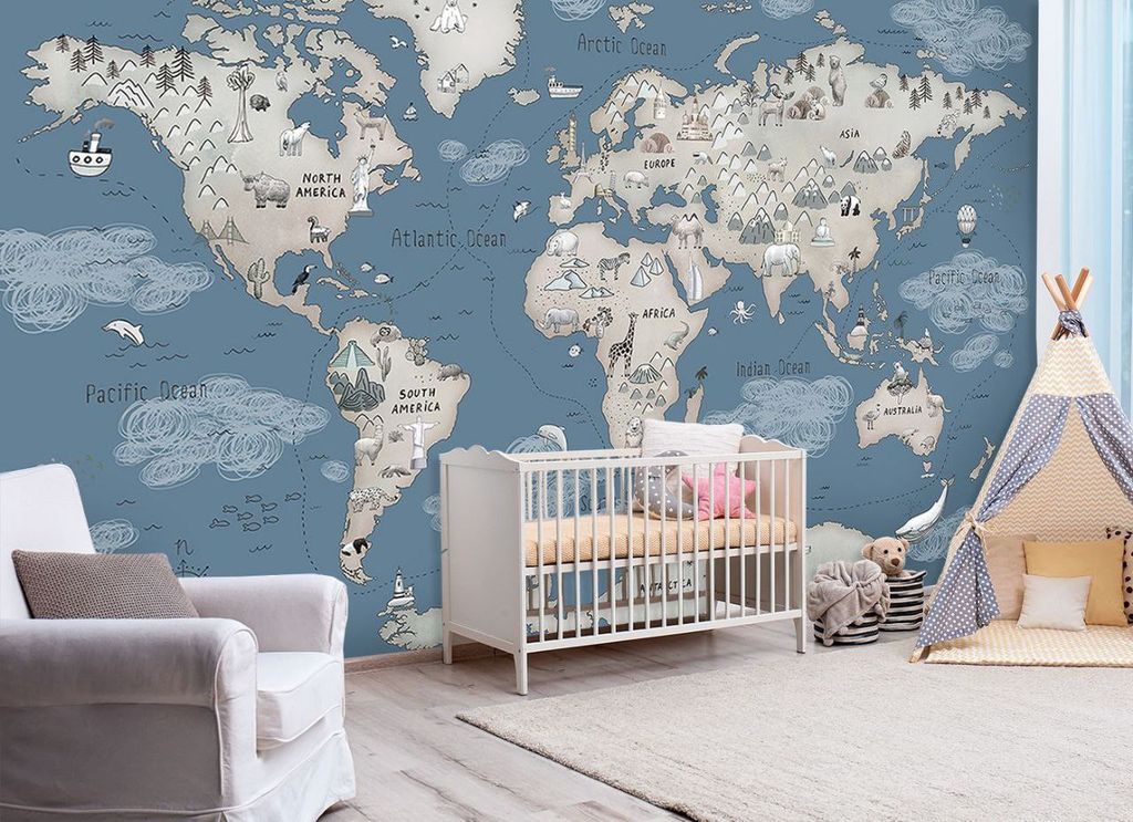 Интерьер-салон "Арт-Деко" предлагает одним выстрелом сразить наповал сразу нескольких зайцев и выбрать в комнату ребенка для акцентной стены обои с картой мира. Строго говоря, их можно приобрести один раз и оставить до самого окончания школы. С малых лет ребенок будет видеть, знать и запоминать расположение материков, название океанов, морей и стран. И на протяжении всего его взросления карта мира на стене не раз ему пригодится. А множество оттенков таких обоев позволит подобрать подходящие в тон всего интерьера.