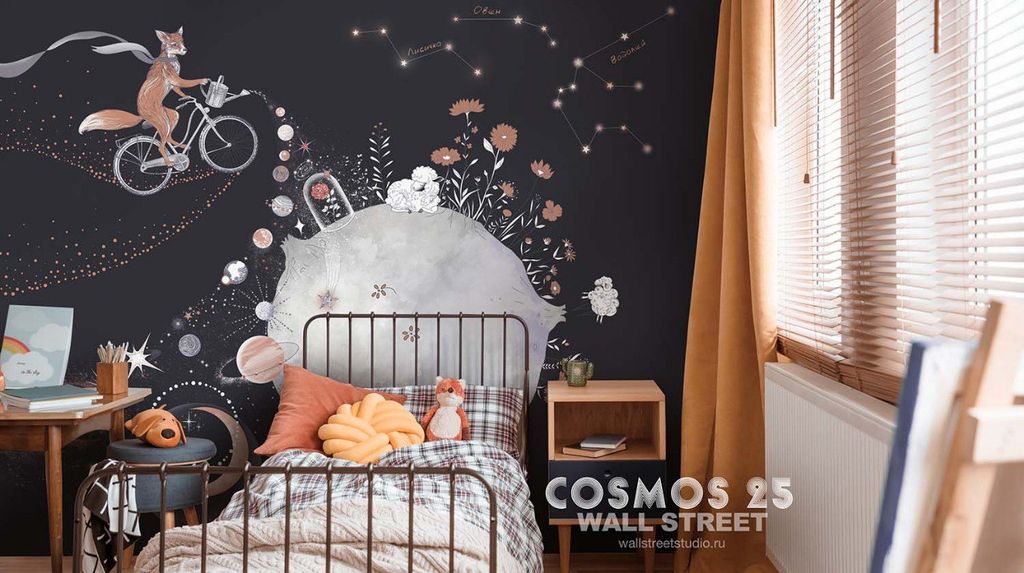 Интерьер-салон "Арт-Деко" предлагает коллекцию дизайнерских принтов COSMOS 25. Это обновленная версия одной из самых популярных детских коллекций. Новые персонажи и сюжеты вдохновят вашего ребенка на изучение окружающего мира и космоса. И мальчикам, и девочкам такие обои придутся по душе, и будут актуальными вне зависимости от возраста.