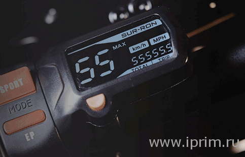 Максимальную скорость в 65 км/ч и крутящий момент в 200Hm обеспечивает электродвигатель с принудительным воздушным охлаждением мощностью 3000W; максимальный угол подъема составляет 45°. Передача крутящего момента на заднее колесо организована при помощи двухступенчатой трансмиссии, включающей ременной редуктор и цепную передачу. Мощный контроллер Sur-Ron предоставляет возможность эксплуатации электропитбайка в режимах Standart/Sport; алгоритм работы электропривода оптимизирован программными профилями, что позволяет максимально использовать потенциал оборудования и добиться незаурядных показателей динамики и скорости в различных условиях. Для визуального контроля скорости и пробега используется оригинальная приборная панель с инвертированным высококонтрастным ЖК-дисплеем.