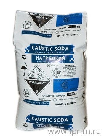 Каустическая сода – это распространенная и самая сильная щелочь. Она имеет вид чешуйчатых гранул белого цвета без ярко выраженного запаха. Размер чешуек колеблется от 0,2 до 0,5 мм. Вещество обладает прекрасными гигроскопическими свойствами, а также замечательно растворяется в воде. При растворении выделяет тепло. Едкий натрий хорошо переносит все доступные способы транспортировки. В жидком виде его перевозят в цистернах. В твердом состоянии его расфасовывают в мешки.