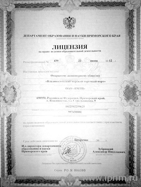 Учебный центр ОАО "Владивостокский морской торговый порт" объявляет о бессрочном продлении лицензии на образовательную деятельность!За годы существования Учебный центр ВМТП, одно из старейших в городе и крае учебных заведений начального профессионального образования, подготовил несколько десятков тысяч специалистов самых различных специальностей для работы в порту.