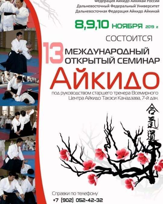 8-10 ноября 2019 года во Владивостоке при поддержке ДВФУ состоялся 13-й международный учебно-аттестационный семинар под руководством Сихана Айкикай Хомбу Такеси Канадзава, одного из лучших в мире экспертов по Айкидо.