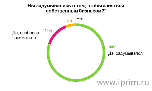 Служба исследований компании HeadHunterпровела опрос и выяснила, что 87% опрошенных сотрудников дальневосточных компаний хотели бы работать только на себя. В первую очередь ими движет стремление к независимости: желание стать хозяином самому себе, никому не подчиняясь (59%). Стремление зарабатывать большие деньги – определяющий мотив 20% респондентов, а 19% интересно попробовать себя в качестве руководителя собственного проекта. Представители сфер «Автомобильный бизнес», «Строительство/Недвижимость» и «Продажи» чаще остальных хотели бы обзавестись собственным делом, а вот среди работников профессиональных областей «Медицина/Фармацевтика» и «Юриспруденция» таковых меньше всего.