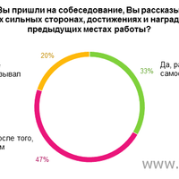 Только каждый третий кандидат рассказывал на собеседовании о своих сильных сторонах и достижениях на предыдущих местах работы самостоятельно. 47% озвучили свои преимущества только после того, как работодатель их об этом попросил, а 20% и вовсе не говорили об этом.