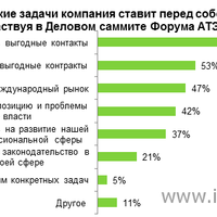 Основная задача почти каждой компании-участника – наладить выгодные контакты (95%), а каждая вторая намерена не только обзавестись полезными связями, но и закрепить их в виде контракта. Учитывая, что сама Организация АТЭС преследует целью укрепление регионального сотрудничества, задачи, которые компании ставят перед собой, становятся весьма очевидными. 47% компаний надеются, что участие в саммите станет для них большим шагом к выходу на международный рынок.