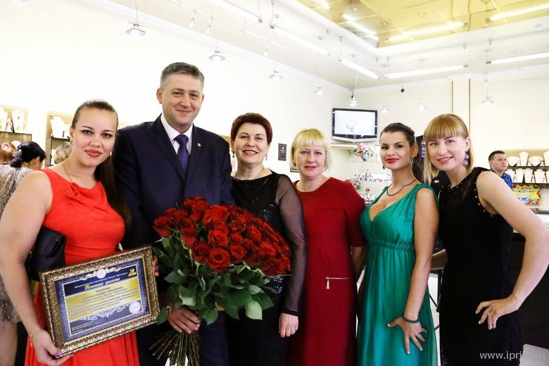 Присоединяются к торжеству не только клиенты, но и партнеры «Золотого ажура». Буквально недавно генеральный директор компании «КАСТ» прилетел из Санкт-Петербурга всего на один день, для того чтобы лично поздравить руководителя Надежду Ткаченко и коллектив ювелирного магазина с их чудесным юбилеем. А на сам юбилей к нам приехали ребята Ювелирная фабрика "Алькор" г. Кострома директор по продажам Пинчуков Дмитрий и наш любимый менеджер Олег и наш друг по Клубу "РЮТ" Алексей Мохначевский компания "Тритон" Якутия!