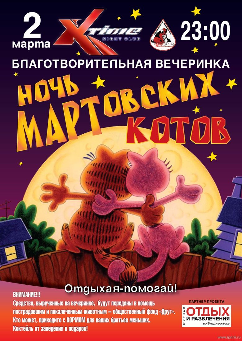 2 марта клуб «X-time» совместно с общественным фондом «Друг» представляет БЛАГОТВОРИТЕЛЬНУЮ ВЕЧЕРИНКУ «Ночь мартовских котов!!