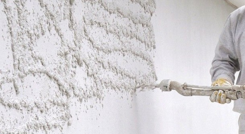 Во время отделочных работ на крупном строительном объекте с целью ускорить процесс оштукатуривания и уложиться в короткий интервал времени используется штукатурная станция, которая позволяет выполнить даже большой объём работ качественно и в сжатые сроки. Нанесение штукатурки происходит под давлением сжатого воздуха, образуя слой штукатурки от 10 до 30 мм.