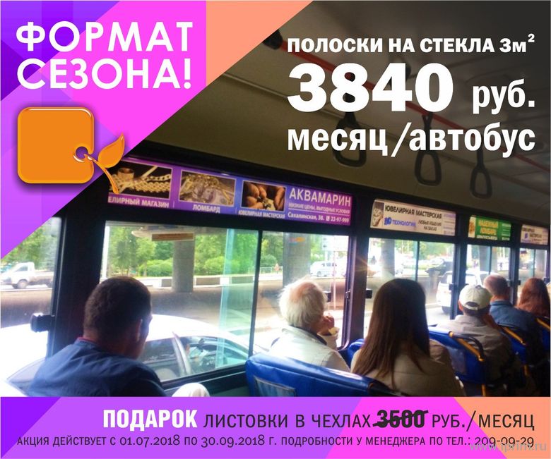 Размещая ПОЛОСКИ ВНУТРИ САЛОНА НА 5 автобусах, вы получаете ПОДАРОК - "ЛИСТОВКИ В ЧЕХЛАХ" на 2 автобуса.