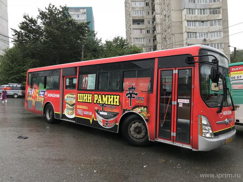 Такие яркие, вкусные и аппетитные автобусы "летают" на наших улицах. Приятно ощущать свою причастность к этому проекту. Корейская компания представила огромный выбор своей продукции. Если Вы решили именно так заявить о своей компании, то тогда к нам. Мы придумаем нестандартный, дерзкий дизайн. Опытные менеджеры разместят Вас на самых эффективных маршрутах. Заказать транзитную рекламу можно по телефонам или написать нам на ra@ newtone.vl.ru Вся информация на сайте компании "Нью Тон".