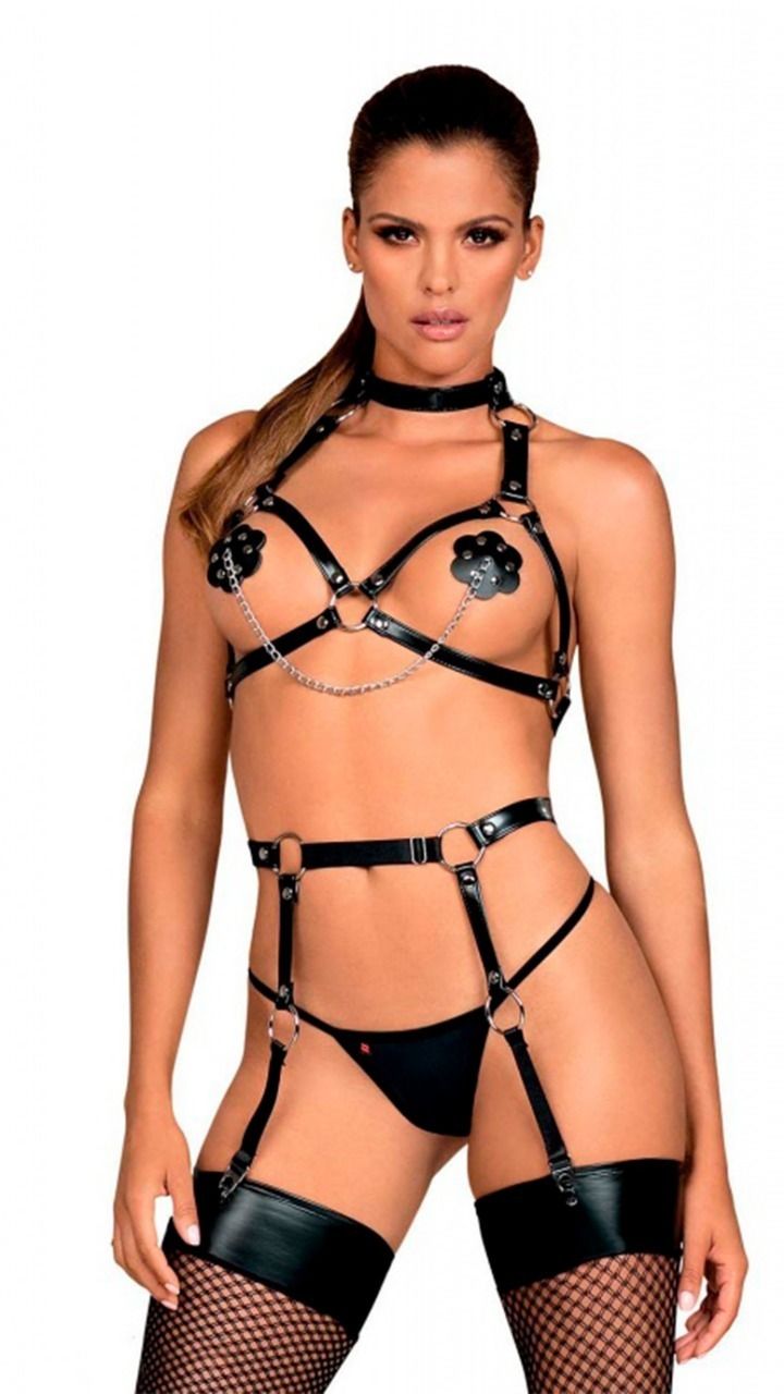 Пополнился ассортимент портупей. Теперь вы можете приобрести портупею в виде бюстгальтера или шейное колье с поясным ремнем. Все портупеи изготовлены из прочного материала, имитирующего кожу, и металла. Регулируемые застежки и декоративные заклепки добавляют украшению пикантности. Хотите сделать образ более смелым и раскрепощенным? А может, думаете, как бы подчеркнуть природную красоту своих форм оригинально и с интересом для любимого? Портупея - несомненно, ваш выбор. Сделать акцент на тонкой талии или пышной груди, заставить партнера неотрывно смотреть на ваши стройные ножки - все это достижимо, если в гардеробе припрятана портупея. Система ремешков сделает любой образ более ярким и выразительным.