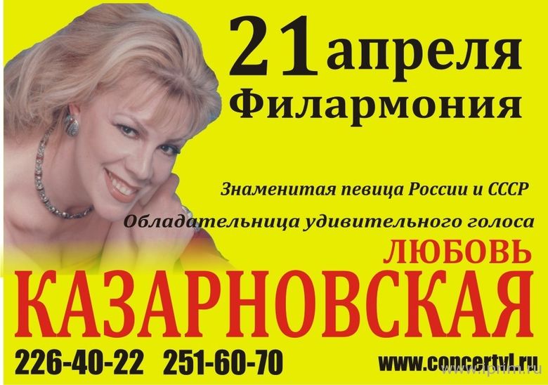 21 апреля с единственным концертом во Владивостоке известная оперная певица (сопрано) Любовь Казарновская.