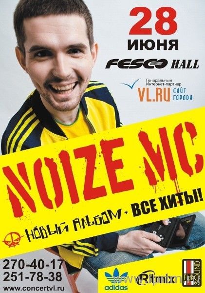 Noize MC (Иван Алексеев) - то ли рэпер, то ли рокер; то ли поп-звезда, то ли альтернативщик; то ли хулиган и матершинник, то ли примерный муж и отец. Что ни скажи о Нойзе - рискуешь попасть впросак, потому что он действительно уникален. Только ему удалось перескочить из "общажного" андеграунда в "высшую лигу" отечественного шоу-бизнеса, не поступившись ни одним из своих принципов и не прогнувшись ни под один из существующих "форматов". Только он может в течение одной недели попасть и в список "богачей" журнала Forbes, и на тюремные нары по обвинению в попрошайничестве. Только ему под силу собрать 3 000 человек на сольник в клубе, а потом отыграть бесплатный уличный концерт для фанов. Noize MC молод, энергичен, лёгок на подъем и остёр на язык. Он считается одним из лучших фристайлеров России, потому что никогда не лезет за словом в карман и моментально реагирует на любую ситуацию, в которой оказывается. Он одновременно и герой с плаката, и звезда с телеэкрана, и парень из нашего двора - других таких сейчас, пожалуй, нет.