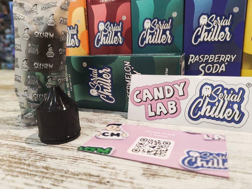 Жидкости Serial Chiller Zero Pod — это линейка жидкостей для под-систем без никотина от известного российского бренда Candy Lab. Объем флакона 27 мл, соотношение PG/VG — 50/50. Жидкость поставляется в больших картонных коробках. В комплект входит дополнительная крышка для флакона. Каждый флакон с жидкостью запечатан во флоу-пак, защищающий продукт от подделок.