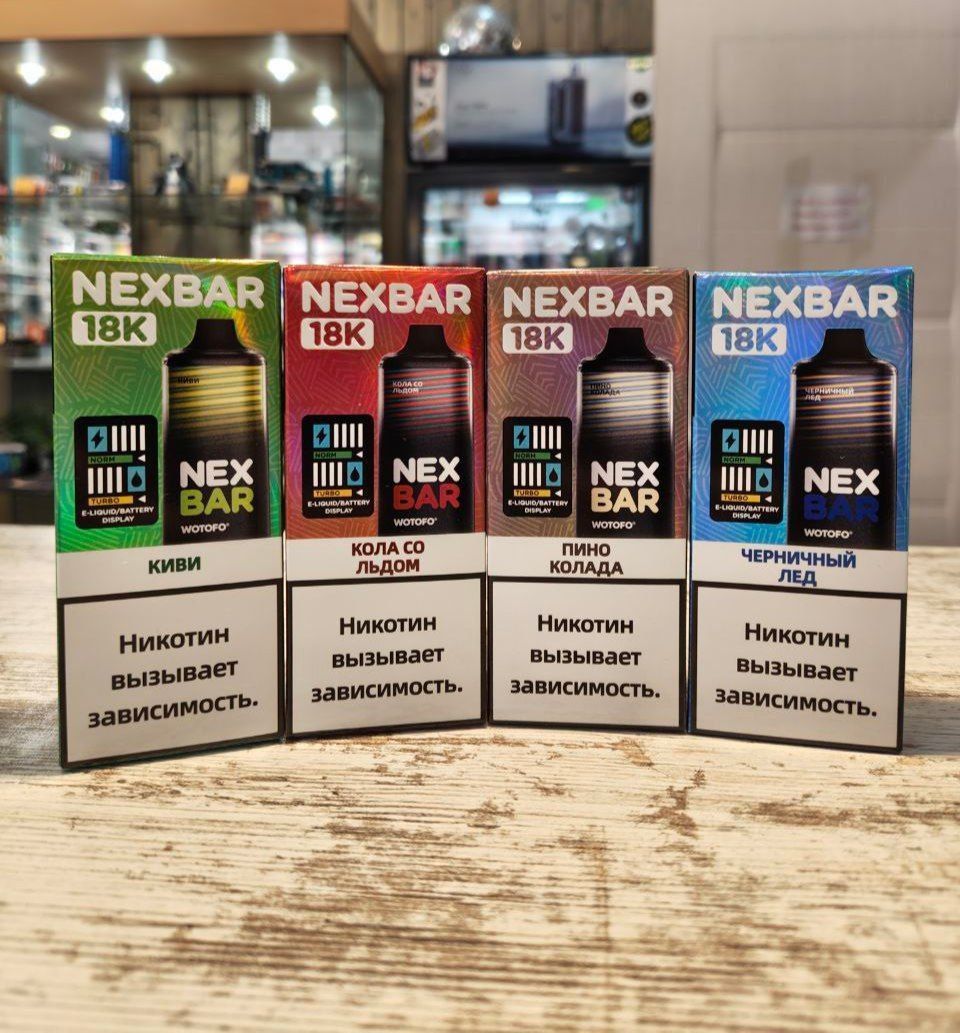 NEXBAR 18k — это одноразовый вейп от компании Wotofo с двумя вертикальными испарителями nexMESH и интеллектуальным светодиодным дисплеем. Устройство оснащено емкостью для электронной жидкости объемом 21 мл и аккумулятором емкостью 750 мАч, с возможностью зарядки через разъём USB Type-C. Испарители Dual Mesh обладают сопротивлением 1,2 Ом. В линейке 20 вкусов, с уровнем никотина 20 мг и 50 мг.