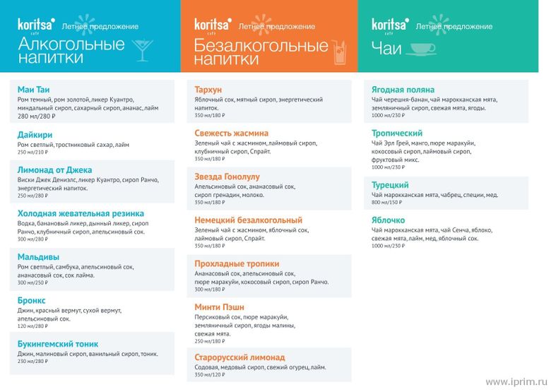 Летнее предложение от бар-менеджера кафе Koritsa