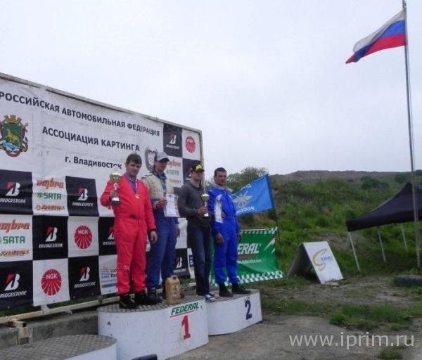 Два автомобиля семейной команды Ищенко по техническим причинам не смогли выйти на первый старт сезона двадцать двеннадцать . Для этих пилотов это этот старт был особенный вдвойне , так как они предоставили для всех участников моно-резину и все автомобили вышли на старт на спортивных покрышках одной марки . Также не удалось прибыть на соревнования спортсменам из Находки. Пятеро участвовавших гонщиков устроили на треке острую борьбу между собой. Были сходы с трассы , болиды некоторых спортсменов не выдерживали накала борьбы и ломались, но в перерывах опытные механики быстро находили причины неполадок и устраняли их. По итогам трехзаездов первое место занял Сергей Заикин из команды "Оверс" , на третьем месте оказался его одноклубник Андрей Воробьев и вторым на подиуме был пилот из команды "Филток" - Евгений Можаров . Главный приз - комплект спортивной резины "FEDERAL" получила команда "Оверс" из Владивостока . Все призеры получили кубки и медали от городского отделения ДОСАФ , грамоты и дипломы от администрации города , а так же подарки от спонсоров .