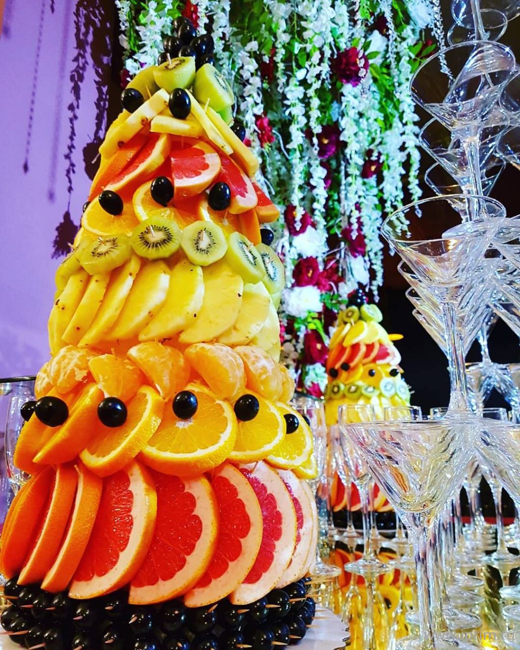 Мы также можем предложить вам огромную фруктовую Ёлку! Размер ее внушителен. Ее место в центре стола на радость гостям и детям.