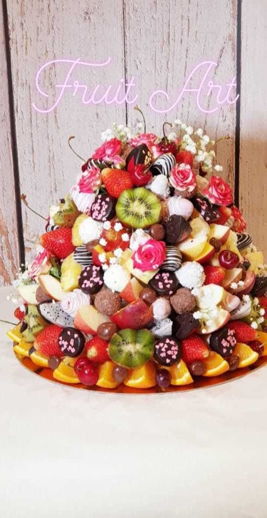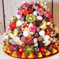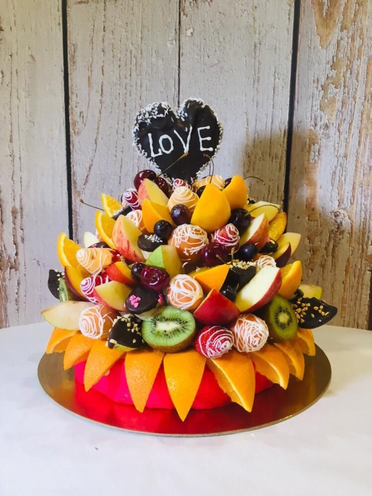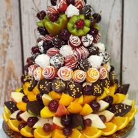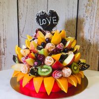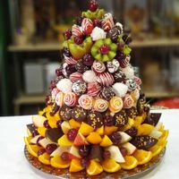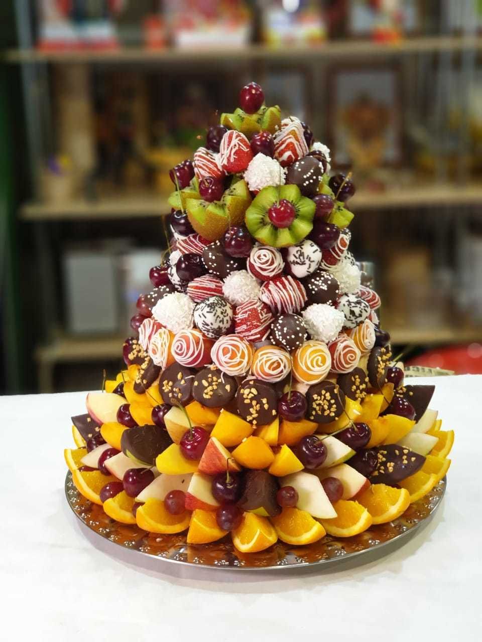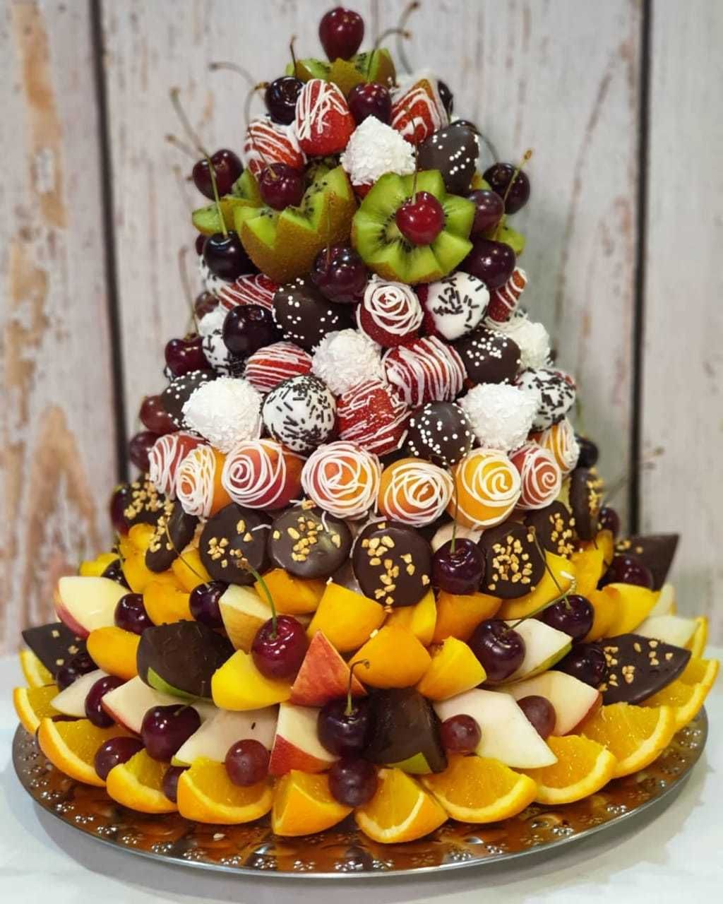 - Большие многоуровневые композиции из фруктов и прочих ингредиентов