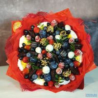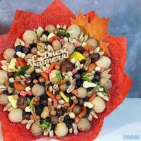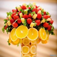 На вкус и цвет. Если праздник мужской - создадим брутальный подарочный букет из копченостей, рыбки и бутылочки пенного; если женский - нежный букет или композицию из свежей клубники в шоколаде или сочных фруктов. К Новому году с удовольствием создадим для вас цитрусово-хвойный шедевр, который станет изюминкой праздничного стола, а, например, ко дню рождения маленького непоседы сделаем букет из конфет, ягод или орешков. Нам под силу создание любого букета или композиции к любому торжеству. Даже букет невесты из фруктов или конфет - реальность, если вы обращаетесь в "Фрут Арт".