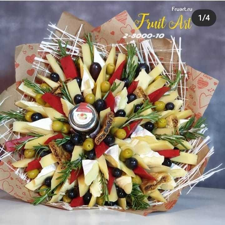 Вкусная композиция из фруктов, сыра или орешков украсит любой праздник. Если вы хотите сделать оригинальный подарок, который не только порадует и удивит, но и займет свое почетное место на праздничном столе - обращайтесь в студию фуд флористики "Фрут Арт"!