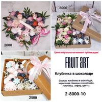 Работаем ежедневно с 9:00 до 18:00. Доставка осуществляется с 9:00 до 21:00. Заказать букет в любое время суток можно на сайте Fruart.ru.
