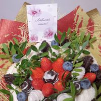 По вашему желанию сделаем букет, композицию или подарочный набор с фруктами и ягодами в шоколаде. По желанию добавим клубнику, ананас, голубику, виноград, чернослив, грушу. Используем только качественный шоколад. Для полноты картины украшаем композиции живыми цветами, добавляем бутылочки с любимыми напитками.