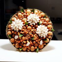 Если по какой-либо причине вашей матери нельзя фрукты и ягоды, можем изготовить букет из орешков, сыра и мясных деликатесов. Даже такая композиция может выглядеть нежно и утонченно, если вы доверили ее создание профессионалам!