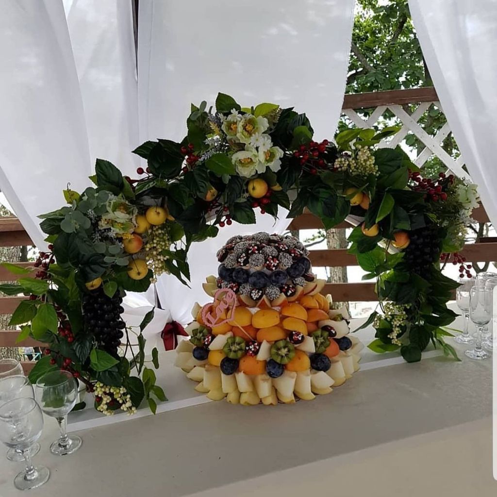 Наши Food-флористы владеют мастерством 80 уровня и могут украсить торжественные и свадебные столы великолепными фруктово-ягодными композициями. Многоярусные конструкции из свежайших фруктов, украшенные паутинкой из белого или черного шоколада, несомненно вызовут восторг и удивят гостей!