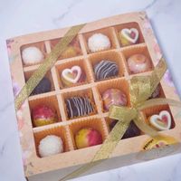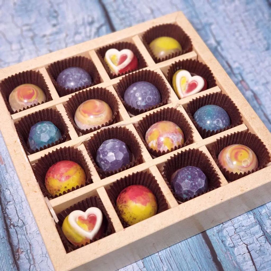 И вот, идеальный рецепт найден - вкусные и красивые конфеты созданы! Представляем вашему вниманию результат наших трудов - конфеты ручной работы с разными начинками. В ассортименте есть конфеты с миндальной, фруктовой, трюфельной, карамельно-вафельной начинкой и начинкой пралине.