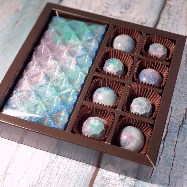 Все лето коллектив студии фуд-флористики Fruit Art тренировался и практиковался над созданием корпусных конфет. То получалось красиво, но не вкусно, то вкусно, но не красиво. Мы работали над разными начинками и дизайном исполнения, закупили много поликарбонатных форм, темперировали шоколад и устраивали дегустации.
