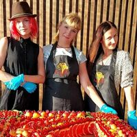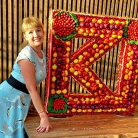 Компанией Fruit Art была изготовлена фруктовая инсталляция на праздник компании Synergy - логотип компании размером 1мерт х 1метр, выложенный фруктами. По краю красная неоновая подсветка, которую, к сожалению, не очень видно на фотографиях.