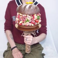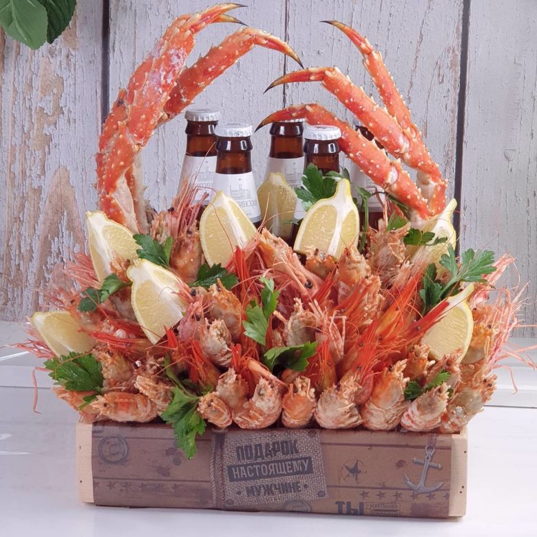Рыба и копчености, орехи и сыр в композиции с хорошим вином, мясные деликатесы, колбаски различных сортов, обрамляющие бутылочку пенного, орешки и прочие снеки - все это может стать основой вашего подарка в любой комбинации. Оформим в виде букета, композиции в крафтовой деревянной коробочке или в виде торта, корабля, самолета, бургера... И вкусно, и необычно, и празднично!
