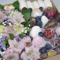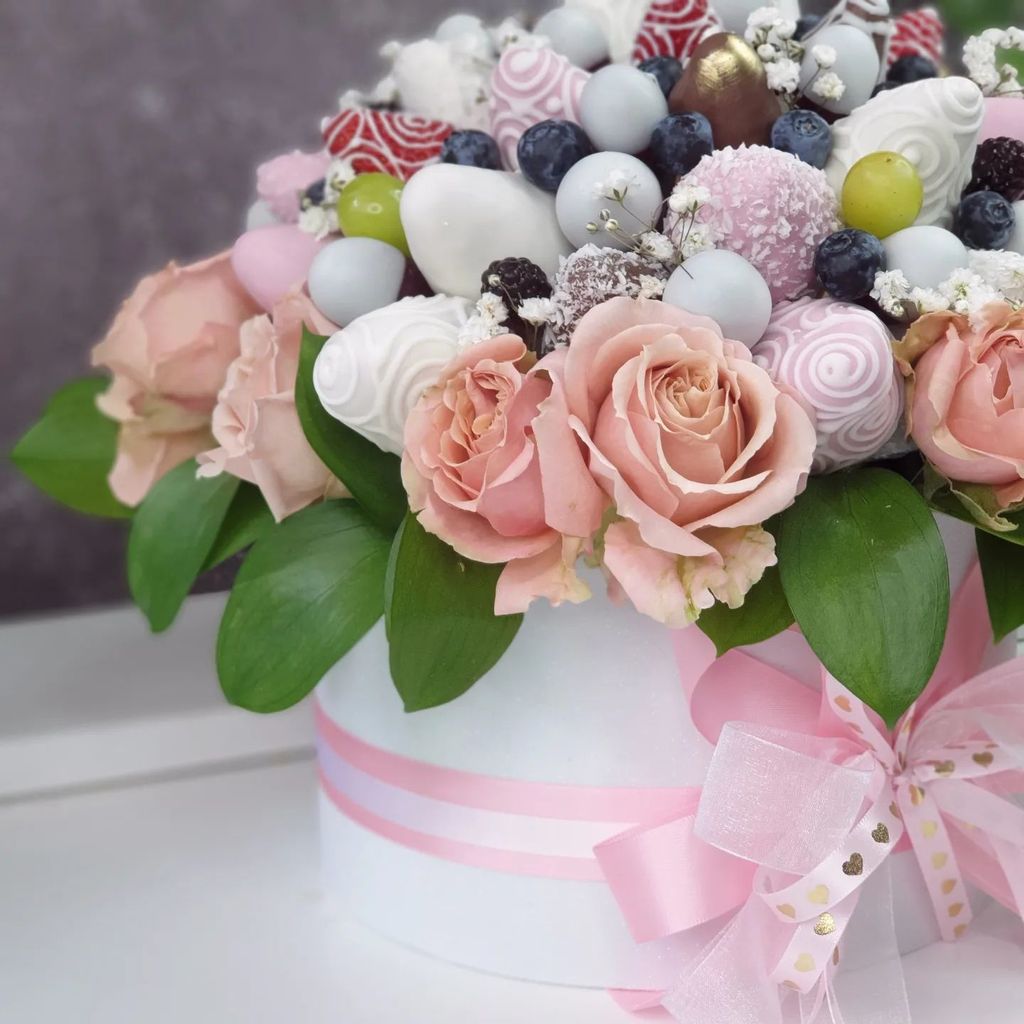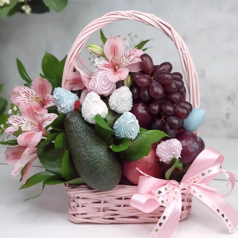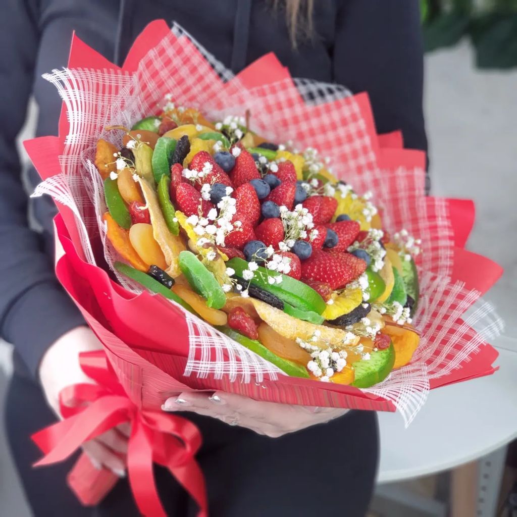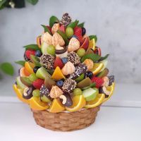 Кроме фруктов в наших съедобных букетах могут быть ягоды, шоколад, конфеты и другие сладости, а также орехи, сыры, колбасы и многое другое. Посмотреть на наши произведения вкусового и эстетического искусства вы можете на сайте Fruart.ru.