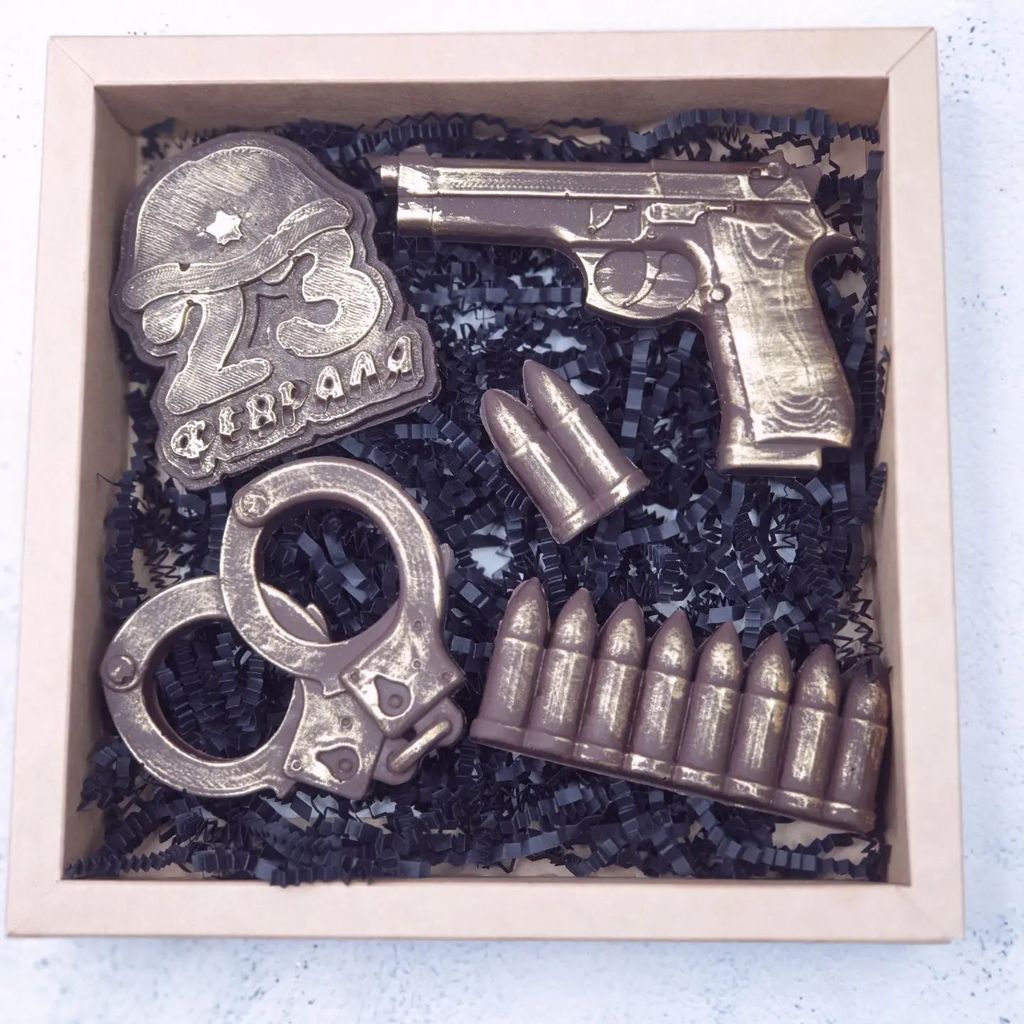 Один из вариантов подарка, с которым мы можем вам помочь - наборы с фигурками из вкусного качественного бельгийского шоколада.