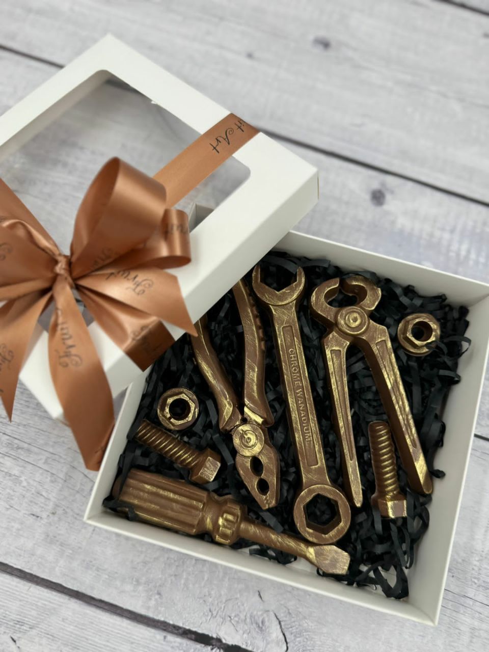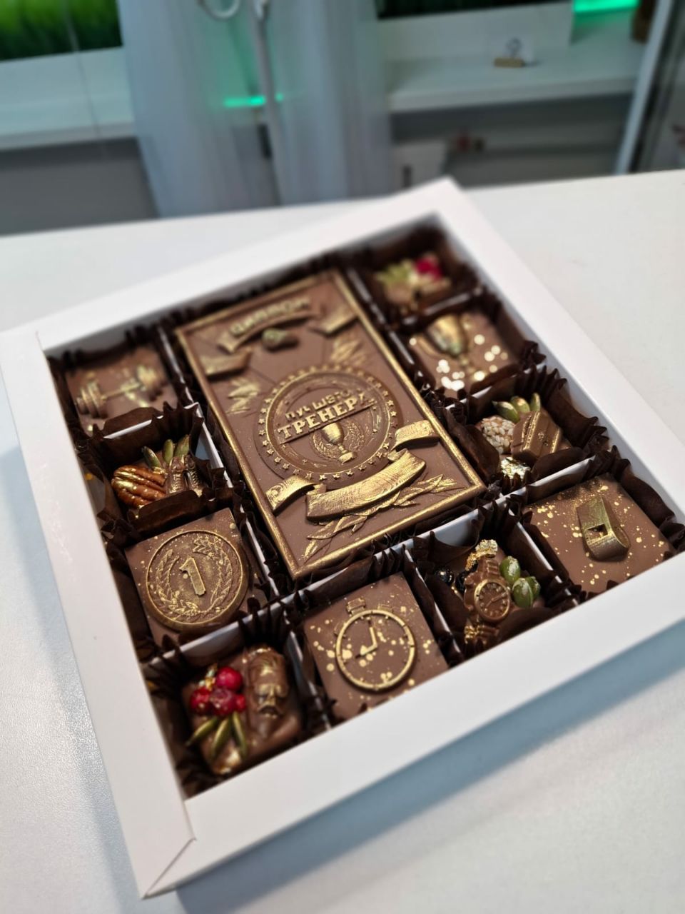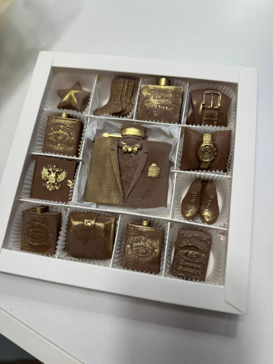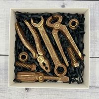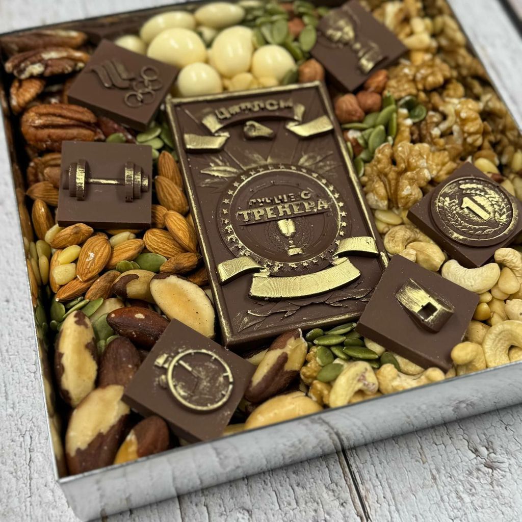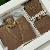 А еще мы можем изготовить шоколадные часы, машины, значки и инструменты. Можем насыпать в коробку орехов и сухофруктов и уложить на все это великолепие любимый напиток вашего мужчины. Можем создать изумительную по виду и вкусу композицию из морепродуктов. Выбирайте идеальный подарок на нашем сайте в разделе "подарки на 23 февраля"! Мы уже принимаем заказы к празднику!