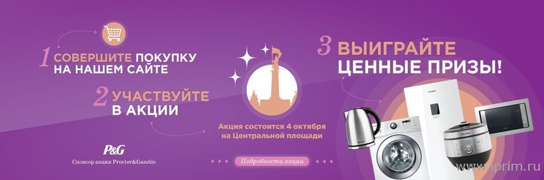 1) В период с 15 сентября по 3 октября совершите покупку на сайте БОНЖУР-ДВ.РФ: любых товаров на сумму от 777 рублей или продукции Procter&Gamble на сумму 555 рублей.