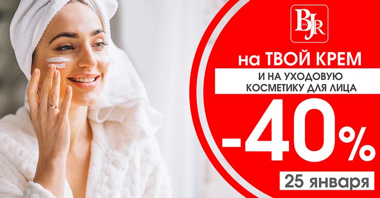 Только 25 января Вы можете купить любимые средства уходовой косметики за кожей лица и тела со скидкой 40%!