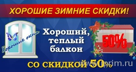 Скидка 50% на установку пластиковых окон, натяжных потолков и жалюзи, монтаж тёплых балконов и лоджий, а также ремонт пластиковых окон.