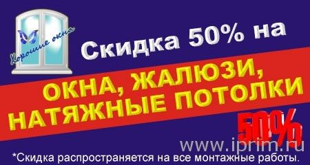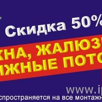 Скидка 50% на окна, жалюзи, натяжные потолки*