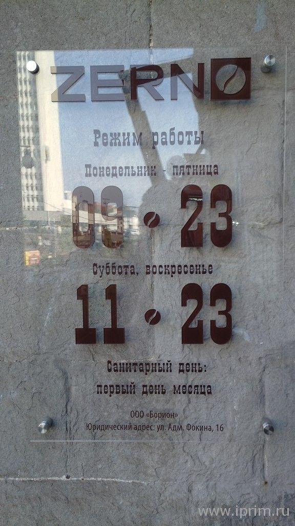 Coffeeshop Zerno – европейский оазис в историческом центре г. Владивостока. Здесь играет спокойная музыка, а у входа Вас приветствует мужчина (символ интеллигенции нашего города), любующийся прохожими с чашечкой восхитительного кофе.